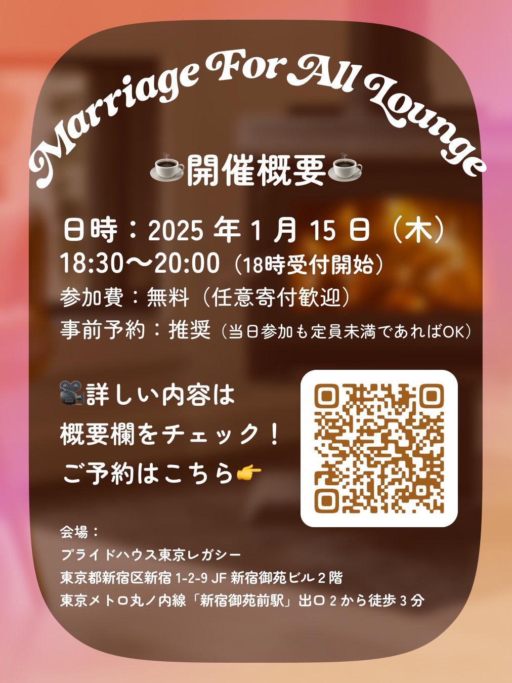 会場:プライドハウス東京レガシー 東京都新宿区新宿1-2-9 JF新宿御苑ビル2階