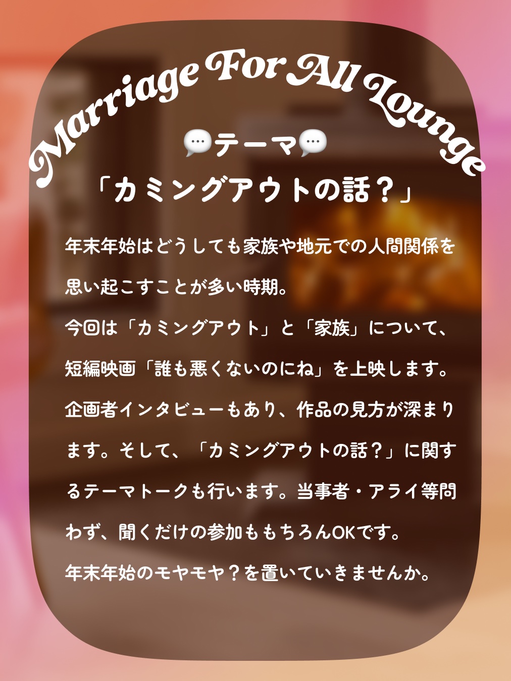 今回のテーマは、「カミングアウトの話?」です!